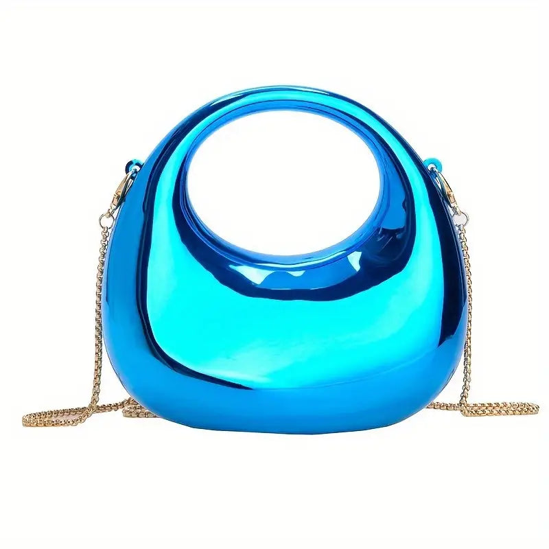 Elegantna mini torbica sa skidajućom lančanom trakom i magnetnim zatvaranjem. Sjajna zlatna boja i akrilni materijal čine je savršenim dodatkom za party, venčanja i noćne izlaske.