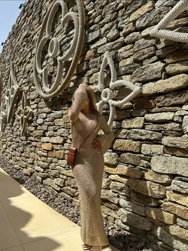 Jednobojna, svestrana haljina sa dugim rukavima i podesivim naramenicama. Idealna za plažu, bazen ili večernje izlaske, kombinuje elegantan dizajn i udobnost za sve sezone.